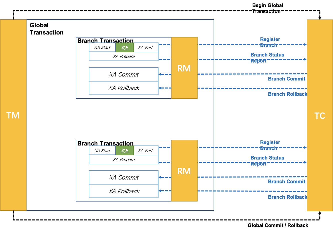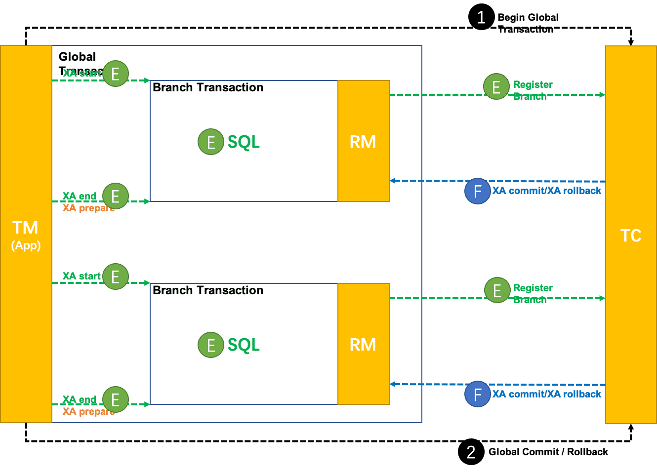 持久化:XA 分支完成后,执行 XA prepare,同样,由资源对 XA 协议的支持来保证 持久化 (即,之后任何意外都不会造成无法回滚的情况)