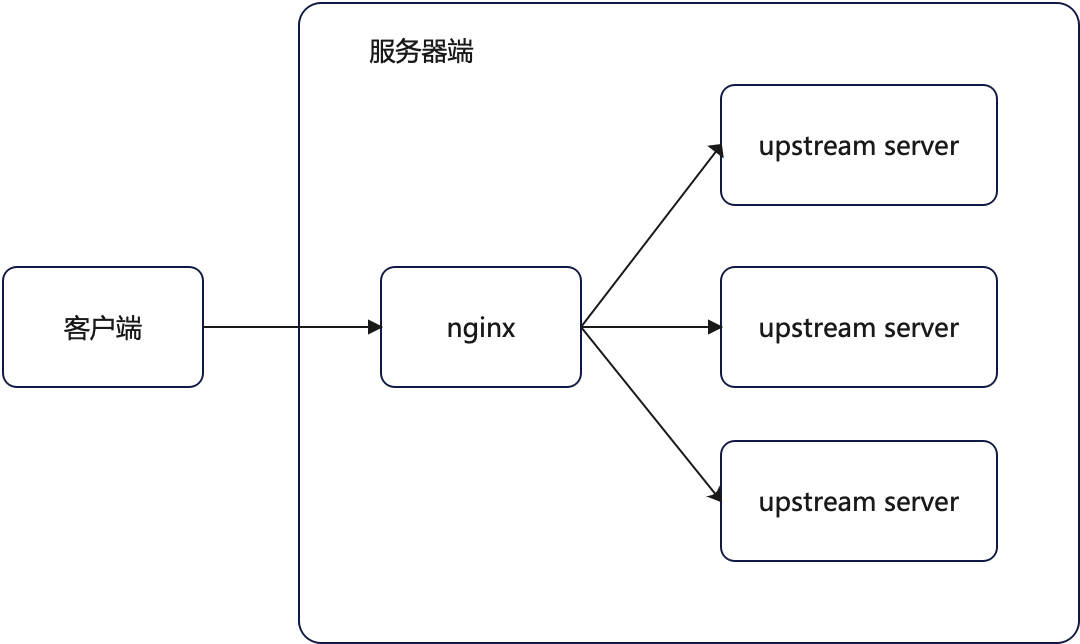Nginx 负载均衡器本身也是一台反向代理服务器,将用户请求通过 Nginx 代理到内网中的某台上游服务器处理,反向代理服务器可以对响应结果进行缓存、压缩等处理以提升性能。Nginx 作为负载均衡器/反向代理服务器如下图所示。