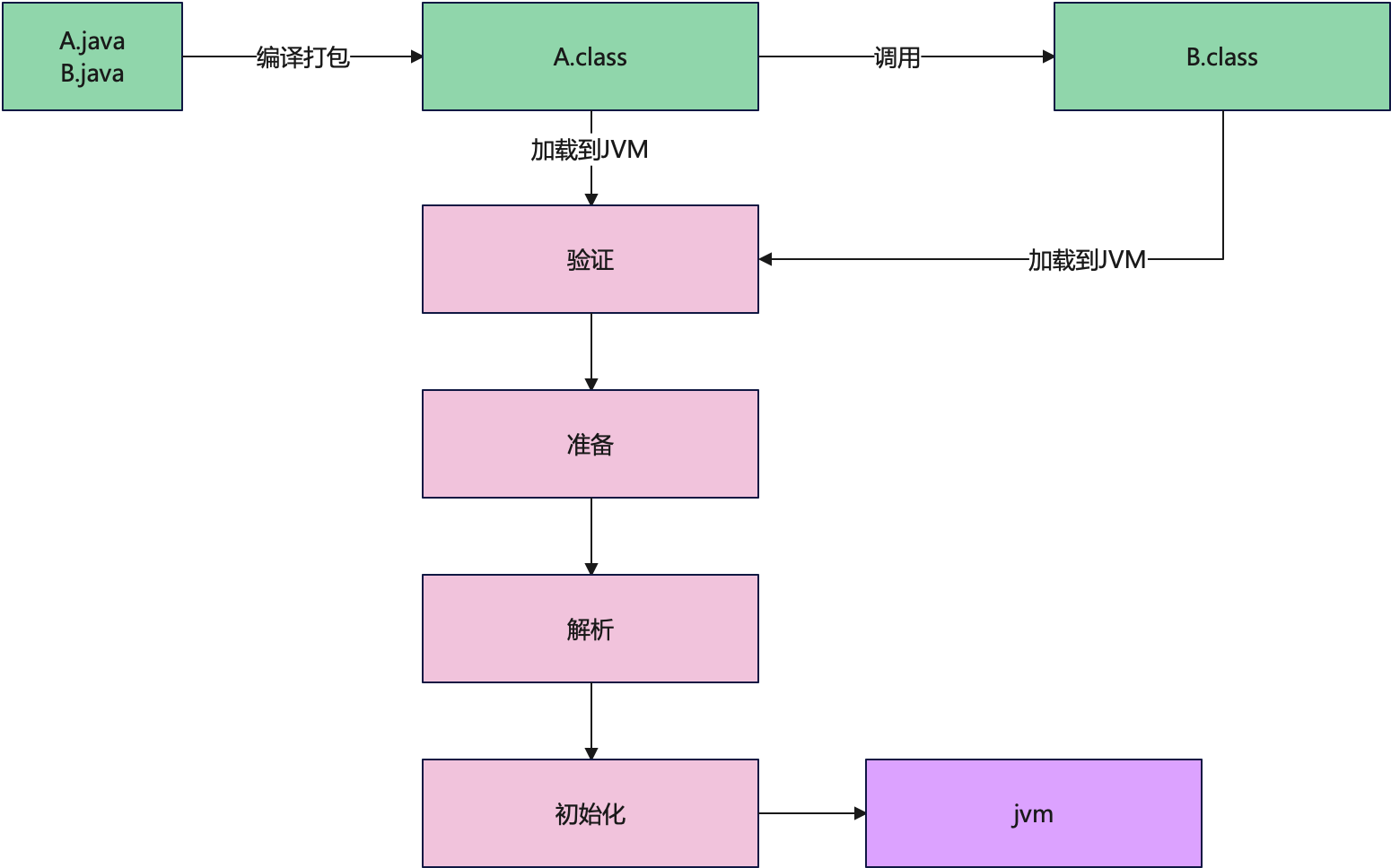 加载 >> 验证 >> 准备 >> 解析 >> 初始化 >> 使用 >> 卸载