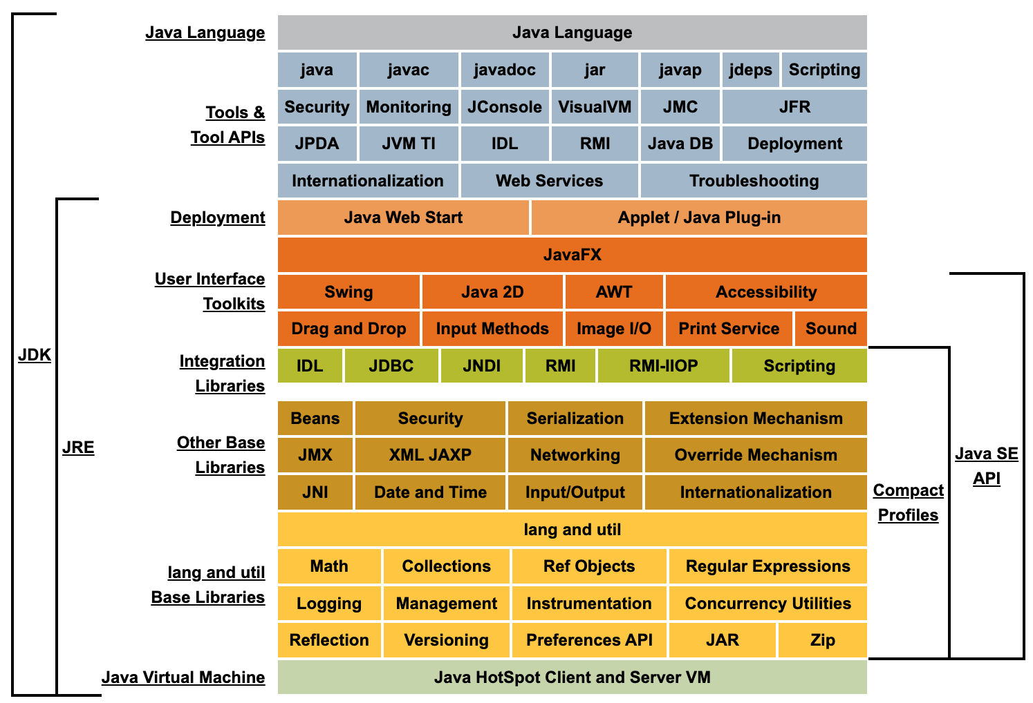 下面的概念图说明了列举了整个Java体系中,所有的组件: