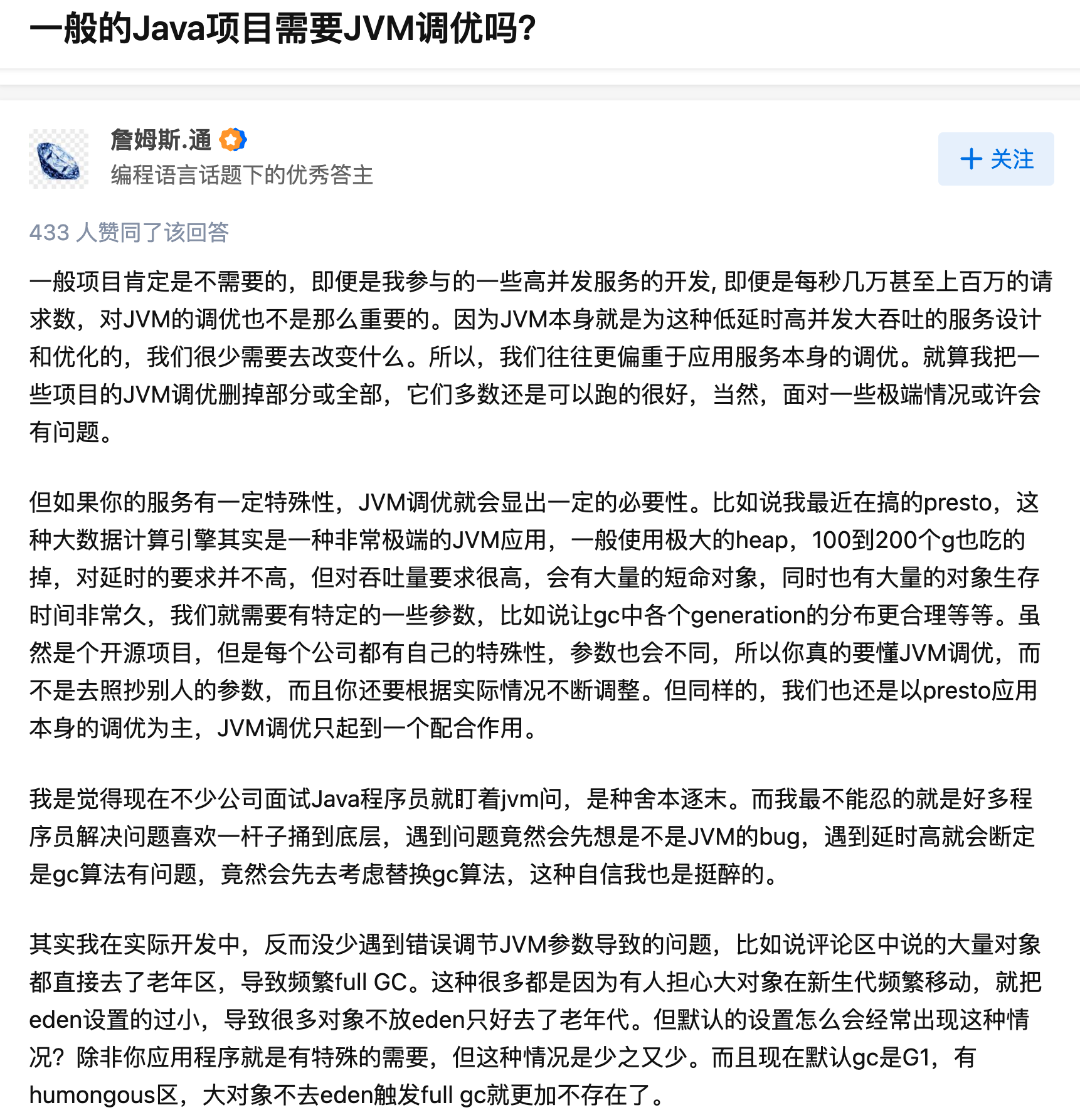 并且调参JVM是迫不得已的选择!